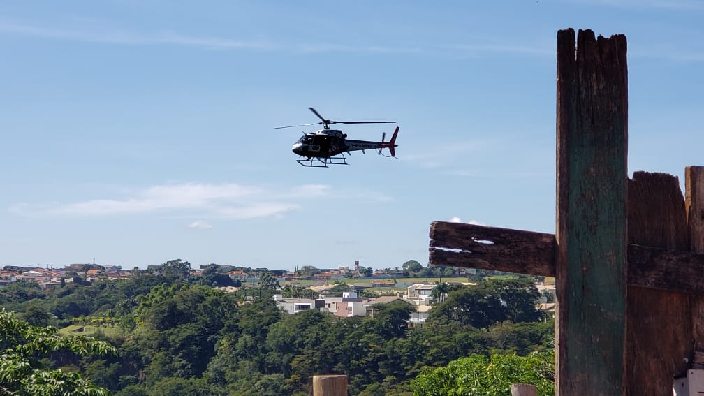 Águia da PM sobrevoa a Vila Barros (Foto: Claudio Farneres/TV TEM)
