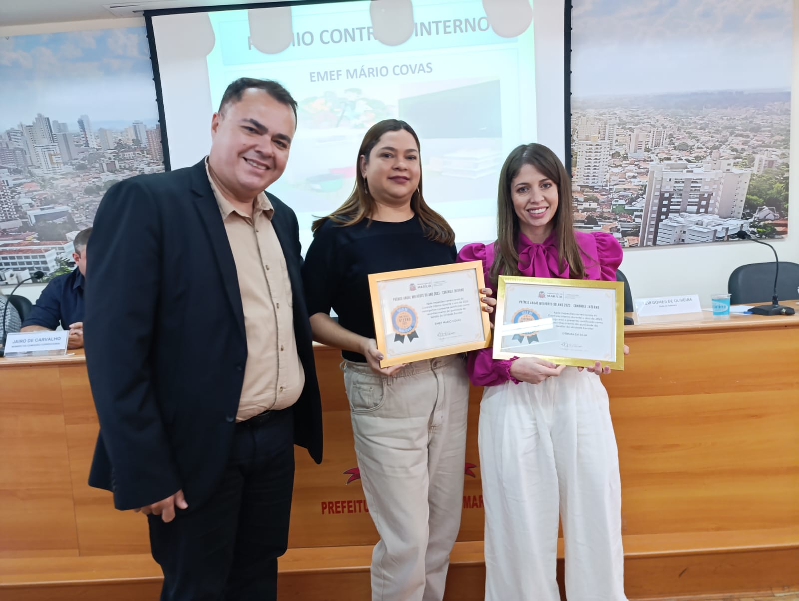 A Prefeitura de Marília e a Corregedoria Geral do Município entregaram na manhã desta terça-feira (17) o prêmio Selo de Qualidade para diretores, Emeis e Emefs da rede de ensino. A solenidade reuniu no auditório do Paço Municipal, educadores e autoridades, incluindo o prefeito Daniel Alonso (PL), o secretário da Educação, Helter Bochi, chefe de gabinete Levi Gomes de Oliveira e a corregedora-geral do Município, Valquíria Galo Febrônio.