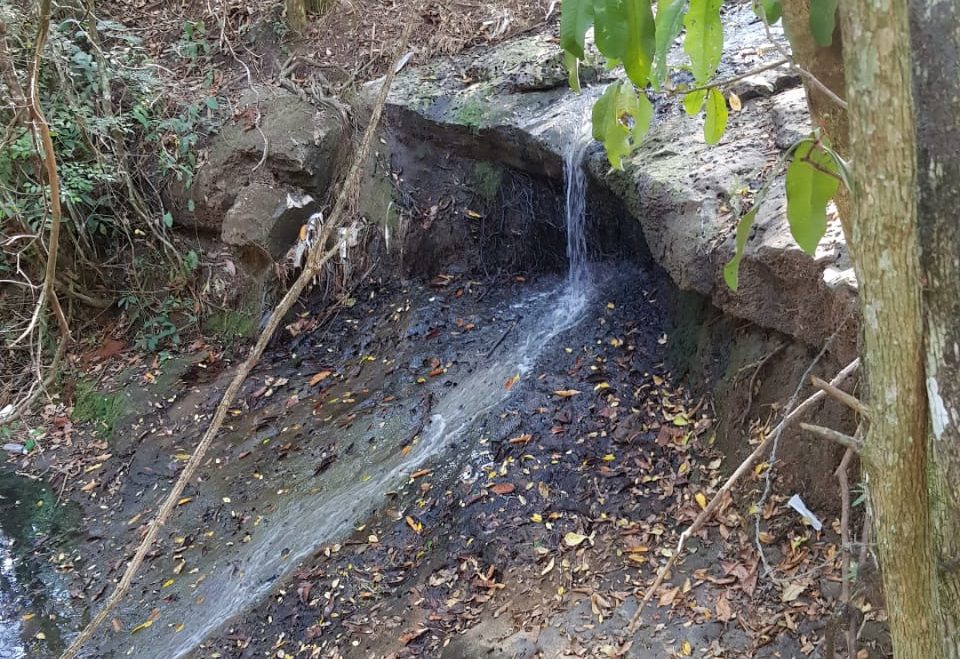 Esgoto produzido em residências do bairro Maracá e adjacências voltou a contaminar o Córrego das Araras e poluir um curso d’água que segue até uma cachoeira, localizada no distrito de Padre Nóbrega.