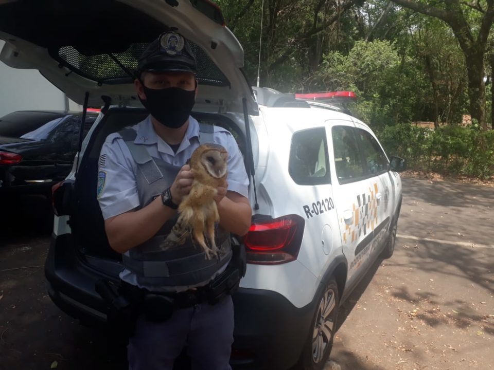 A polícia informou que o animal estava com uma das pernas lesionadas e foi levado ao Zoológico para receber cuidados veterinários. Assim que possível, a coruja deve ser devolvida à natureza.