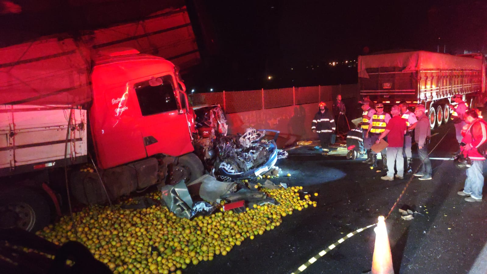Segundo informações da Polícia Rodoviária Estadual, as causas do acidente ainda serão investigadas, mas o carro seguia entre dois caminhões, sendo o de trás carregado com laranjas.