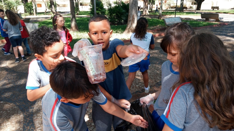 Já o 3º ano direcionou sua atenção para o quarteirão da escola, e o 4º ano focou na limpeza do calçadão da linha do trem.