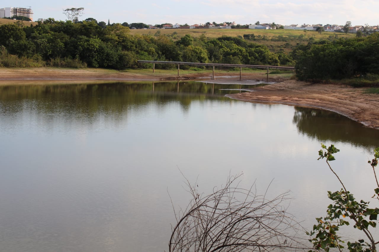 Represa Cascata, um dos poucos pontos de captação superficial em Marília, dá noção de como a seca se antecipou (Foto: Carlos Rodrigues/Marília Notícia)