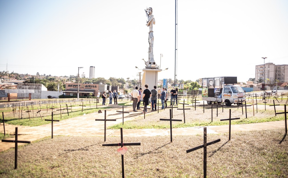 As 364 cruzes que foram colocadas na rotatória São Francisco em Assis (distante 75 quilômetros de Marília), em homenagem às vítimas da Covid-19, foram retiradas neste domingo (25).