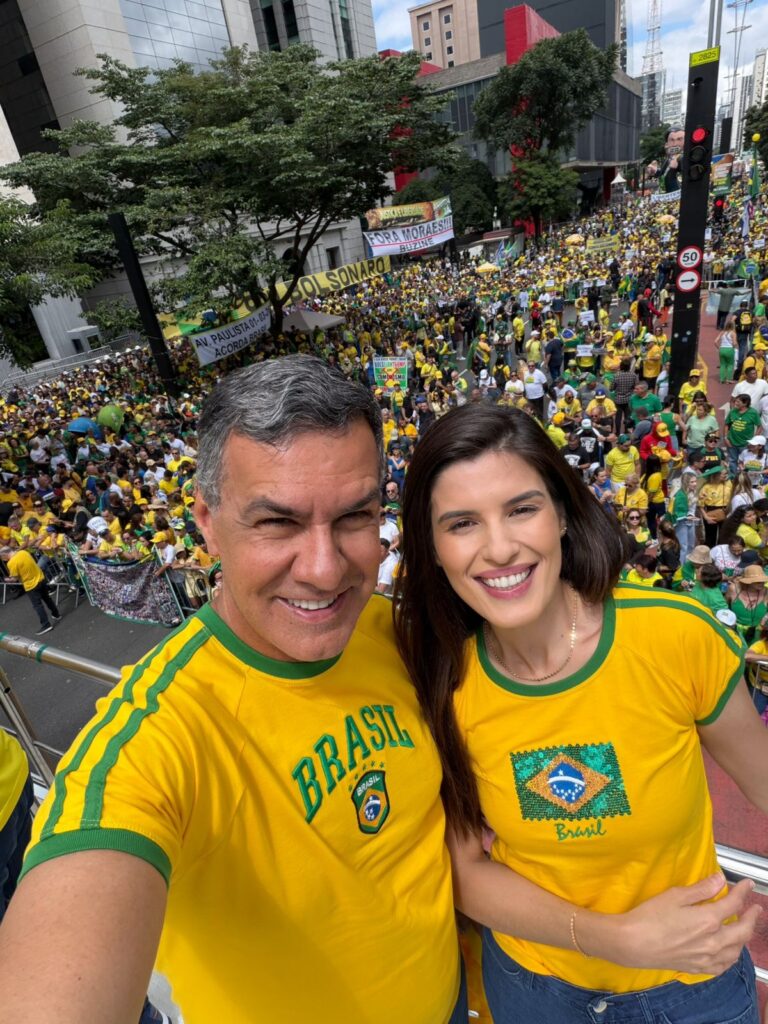 A deputada estadual Dani Alonso (PL) e o deputado federal Capitão Augusto (PL) estiveram, neste domingo (1º), na avenida Paulista junto a dezenas de milhares de manifestantes do movimento Acorda Brasil. O ato pediu “fora Lula”, exigiu anistia para os presos de 8 de janeiro e fez críticas ao autoritarismo do Supremo Tribunal Federal (STF).