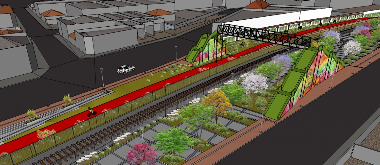Imagem do “Parque Linear” para linha férrea que corta Marília (Foto: Divulgação)
