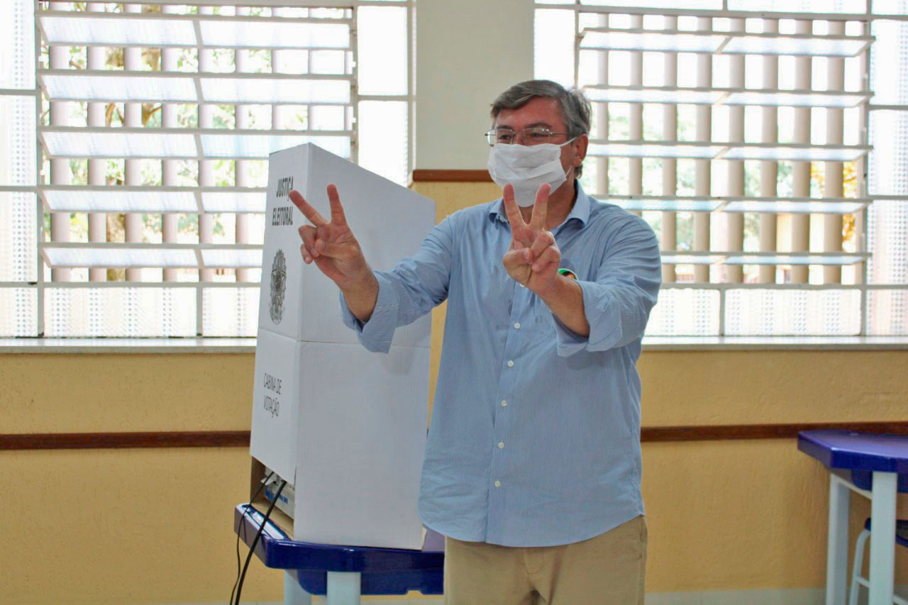 O candidato à reeleição Daniel Alonso (PSDB) votou durante a manhã deste domingo (15) no Colégio Cristo Rei, na zona Leste de Marília. Ele chegou acompanhando da primeira dama Regina Alonso, familiares e do candidato a vice, Cícero do Ceasa (PL).