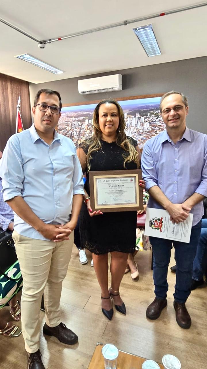 “É uma alegria prestar essa homenagem a uma mulher que foi para tão longe, enfrentou muitas dificuldades e hoje é uma referência. Uma das funções do Poder Legislativo é reconhecer marilienses que fazem a diferença, que se destacam por suas ações e contribuição para a sociedade. Sandra passou por momentos difíceis, mas venceu e hoje dá apoio às mulheres que precisam e fortalece a defesa de pautas que nós também nos dedicamos. Marília é sua terra, Sandra, e temos muito orgulho de você”, destacou Danilo da Saúde.