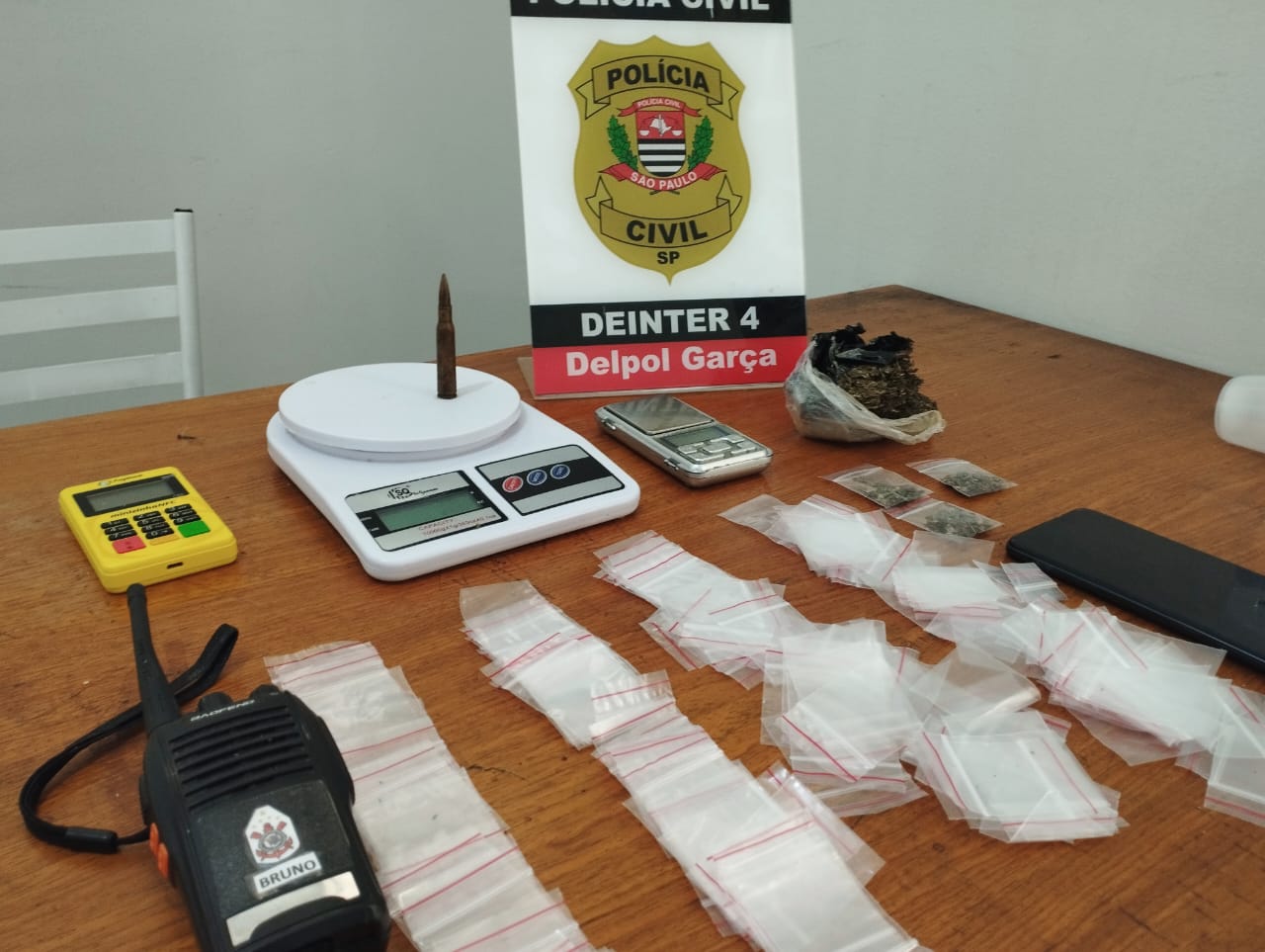 A Polícia Civil de Garça, em cumprimento a um mandado de prisão preventiva por violência doméstica, expedido pela Justiça, acabou por prendeu em flagrante um homem de 32 anos no Jardim Cafezal por tráfico de drogas e porte ilegal de munição.