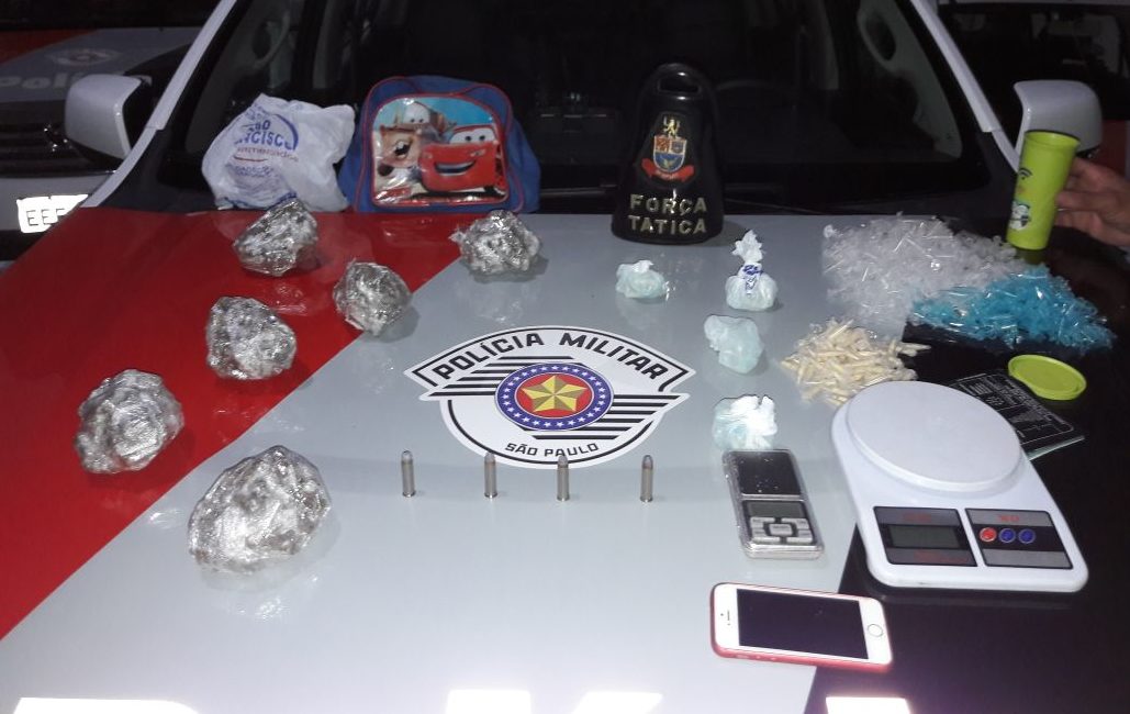 A Força Tática da Polícia Militar prendeu em flagrante, acusado de tráfico de drogas e posse ilegal de munições de arma de fogo de uso restrito, o ajudante de pintor Hebert Custódio da Silva de Souza, 32 anos. Os policiais atendiam denúncia de vítima baleada, que não foi encontrada.