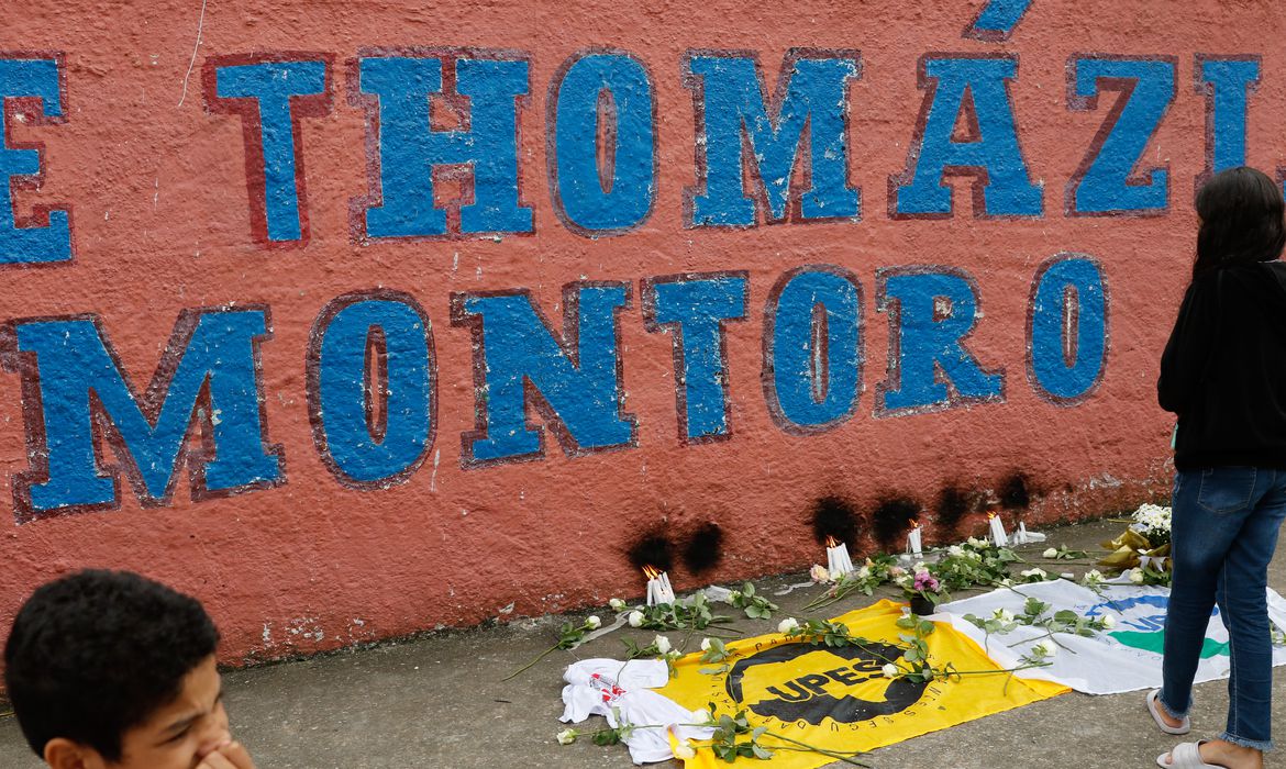 São Paulo (SP), 28/03/2023 - Alunos da escola estadual Thomazia Montoro e secundaristas do movimento estudantil prestam homenagens às vítimas do ataque, na porta da escola, em Vila Sônia. Foto: Fernando Frazão/Agência Brasil
