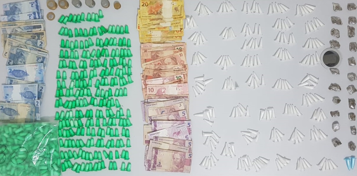 Segundo a PM, ele foi questionado sobre os entorpecentes e confessou envolvimento no tráfico, porém não informou quem seria o proprietário das drogas e do dinheiro.