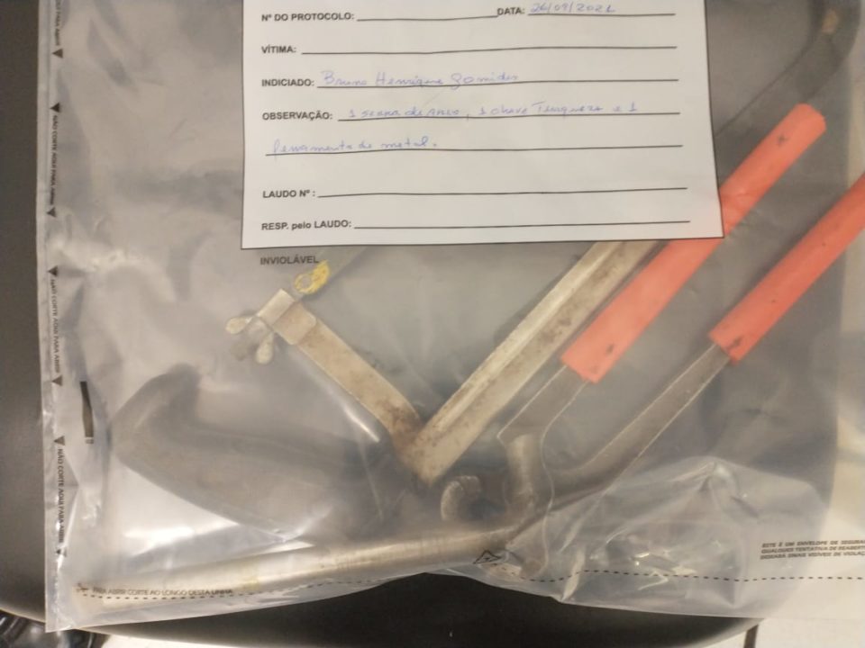 Bruno carregava a chave turquesa, mas abandonou no local do furto os cabos e a serra.