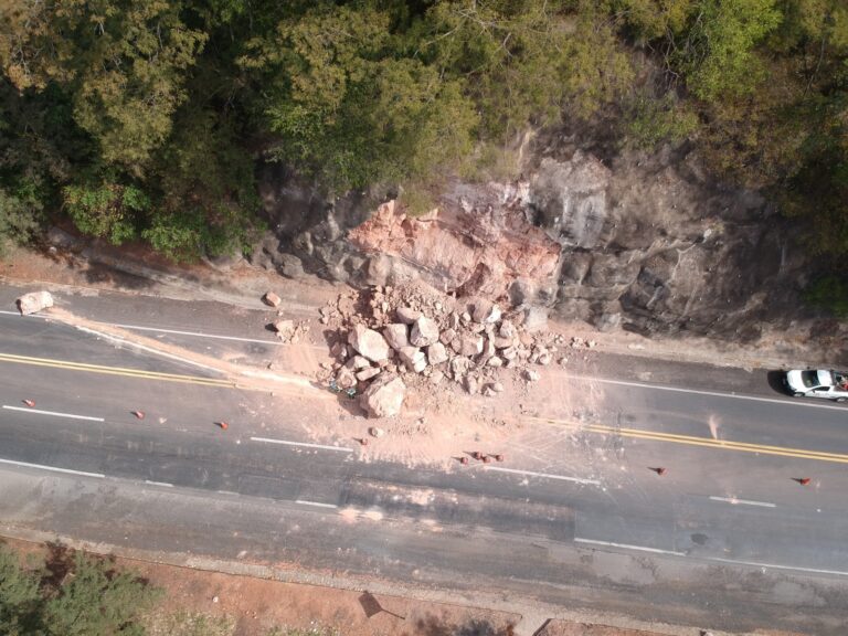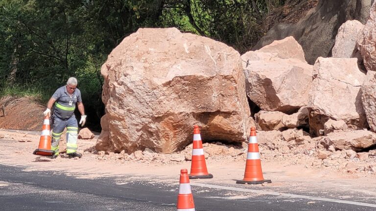 A Triunfo informa que acompanha a situação e elabora um laudo técnico para apurar as causas do deslizamento, para apontar as medidas corretivas. Mesmo com a retirada das pedras que caíram sobre a pista — algumas com toneladas de peso —, o local seguirá parcialmente interditado, com parte do fluxo desviada para o acostamento.