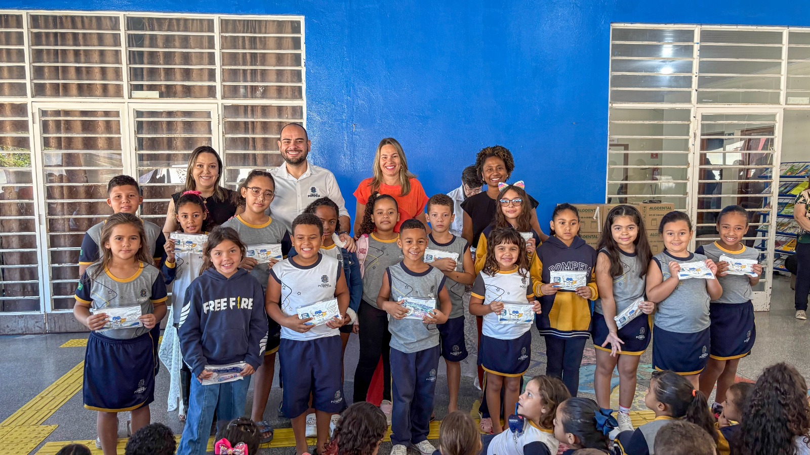 O Departamento de Higiene e Saúde (DHS) de Pompeia entregou, nesta semana, kits de higiene bucal a todos os alunos da rede municipal de ensino de Pompeia. A ação, realizada em parceria com a Secretaria de Educação e Cultura, também contempla a Associação de Pais e Amigos dos Excepcionais (Apae) local e, segundo o órgão, integra a estratégia de promoção da saúde na Atenção Primária.