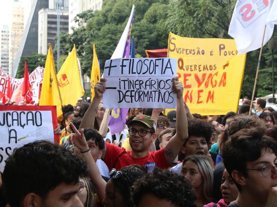 Neste ano, o Novo Ensino Médio está no centro do debate. As entidades estudantis pedem a revogação da Lei 13.415/2017, que institui o novo modelo para a etapa. As escolas começaram a implementar os novos currículos no ano passado. O ensino médio passa a contar com uma parte do currículo comum, definida pela Base Nacional Comum Curricular, que estabelece o mínimo que todos os estudantes devem ter acesso. Na outra parte do currículo, os estudantes escolhem itinerários formativos, dependendo da capacidade de oferta de cada rede de ensino.