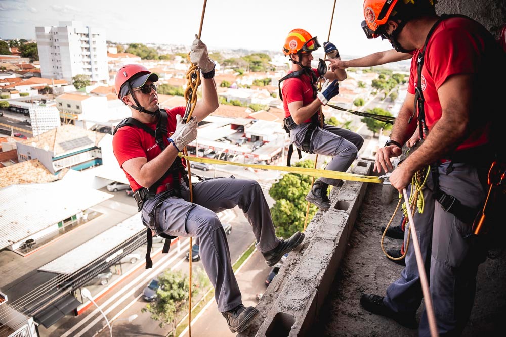 Bombeiros realizaram rapel e simulação de salvamentos em altura no Dia dos Bombeiros (Foto: Wagner Martins)