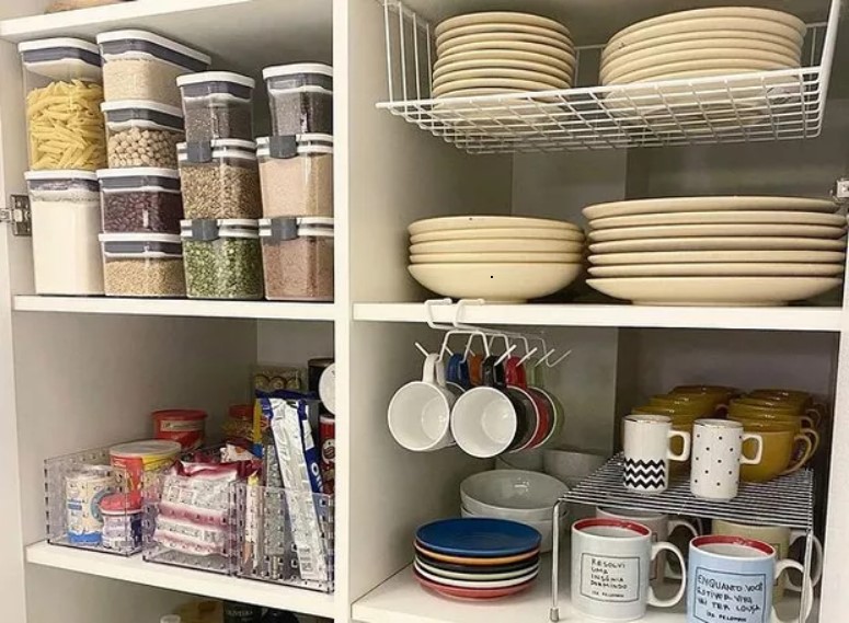 Itens utilizados diariamente devem estar em locais de fácil acesso, enquanto aqueles usados ocasionalmente podem ser armazenados em prateleiras altas ou espaços menos acessíveis. Pensar na frequência do uso dos objetos é importante para escolher como guardá-los.
