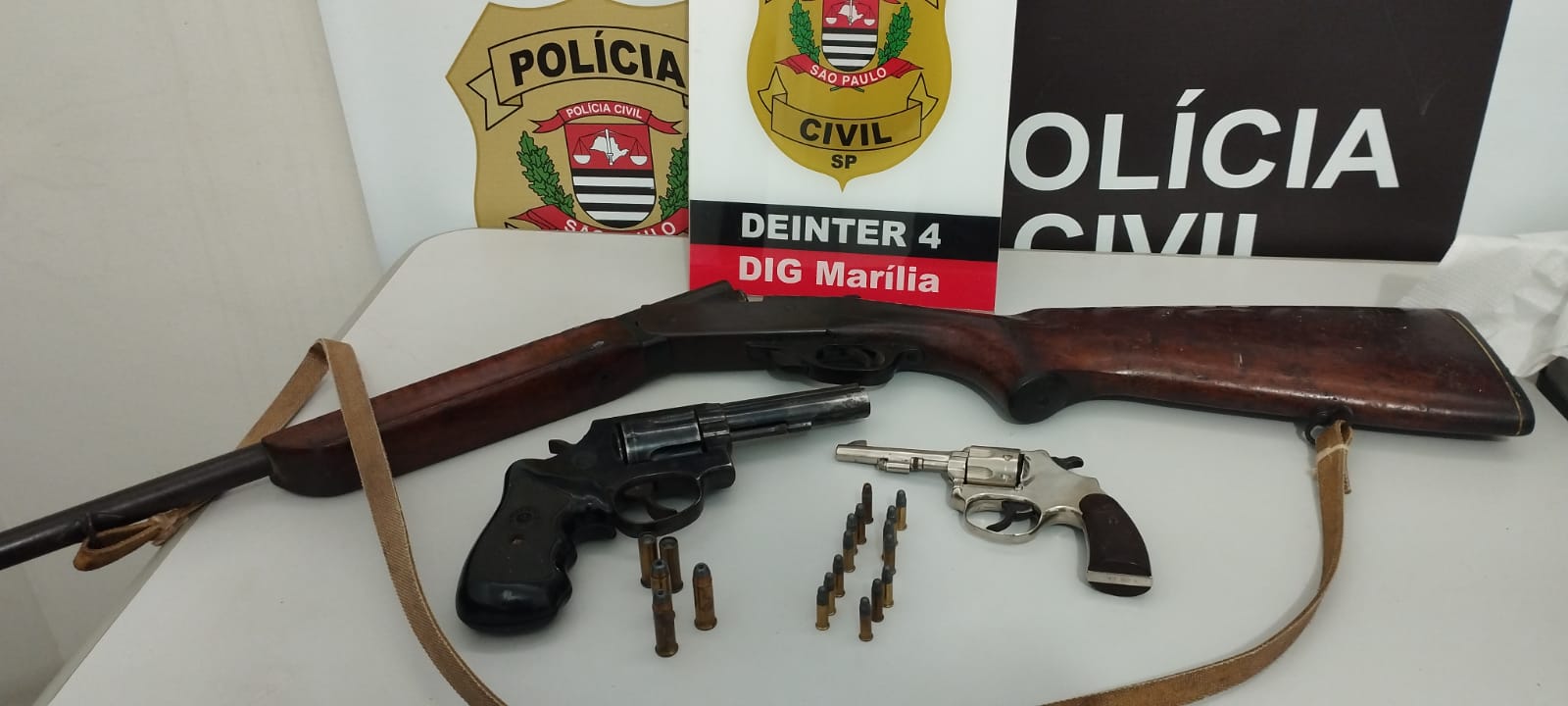 A Delegacia de Investigações Gerais (DIG) da Polícia Civil prendeu um homem em flagrante na tarde desta quinta-feira (24), acusado de posse ilegal de arma de fogo, em uma propriedade rural de Vera Cruz (distante 12 quilômetros de Marília). Ele foi autuado pelo crime, mas pagou fiança e foi colocado em liberdade.