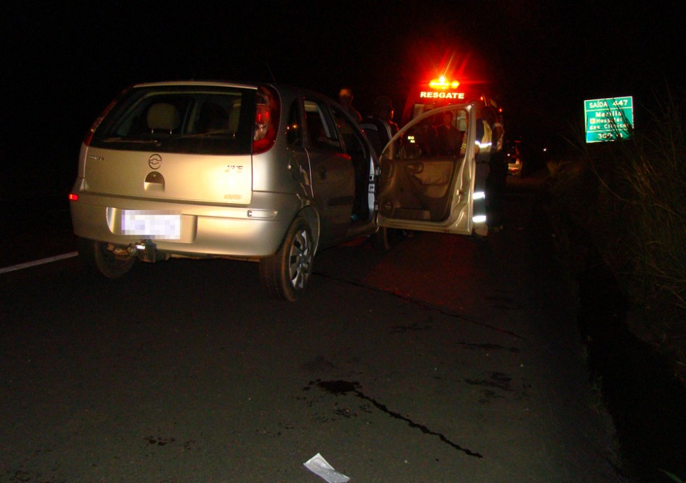 Marcas de sangue ao lado de carro que parou na Rodovia do Contorno (Foto: Marília Notícia/Arquivo)