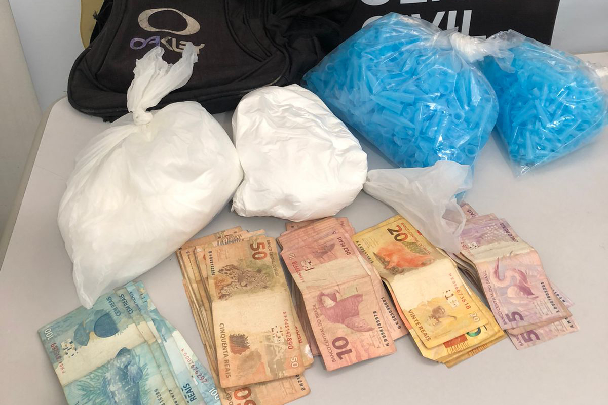 A DIG encontrou ainda sete pinos com cocaína que já estavam prontos para a venda. Em posse do rapaz, dentro do apartamento, foram localizados R$ 2.800 em dinheiro, em notas diversas, e contabilidade que indicava tráfico de drogas.