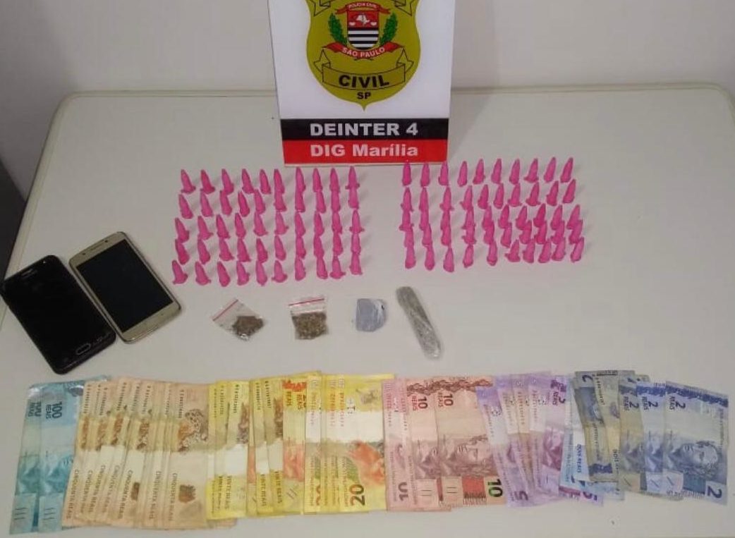 A Delegacia de Investigações Gerais (DIG) prendeu em flagrante por tráfico de drogas, nesta terça-feira (5), um homem de 25 anos, que não teve a identidade revelada e se declarou autônomo. A prisão ocorreu por volta de 6h15, na rua Salvador Salgueiro, Vila Barros, zona Norte de Marília.