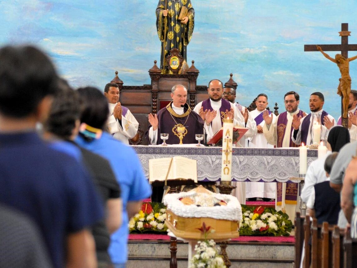 O corpo do bispo emérito chegou ao local por volta das 21h de ontem, onde foi recebido por fiéis, ministros ordenados e religiosos em um momento de oração. Na sequência, o bispo diocesano, Dom Luiz Antonio Cipolini, presidiu a primeira missa de corpo presente.