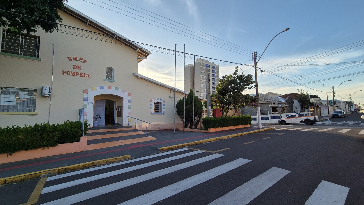 A Prefeitura instalou um windbanner nas imediações da Emef Pompeia Grupão, localizada próxima à rodovia SP-294 – via expressa, com o objetivo de alertar motoristas sobre a presença de crianças e a necessidade de reduzir a velocidade ao transitar pelo local.