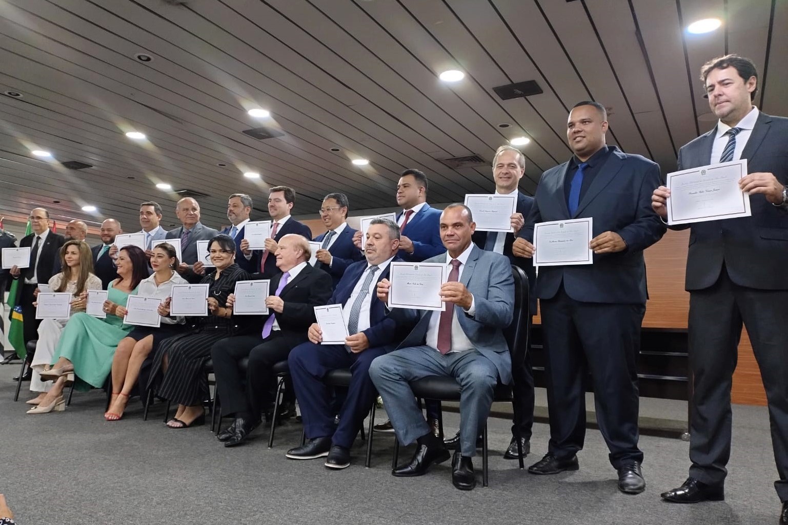 Assim, receberam das mãos do juiz o diploma de eleito os vereadores Mauro Cruz (Solidariedade), Chico do Açougue (Avante), Batata Corredato (PP), Delegada Rossana Camacho (PSD) e João do Bar (PSD).