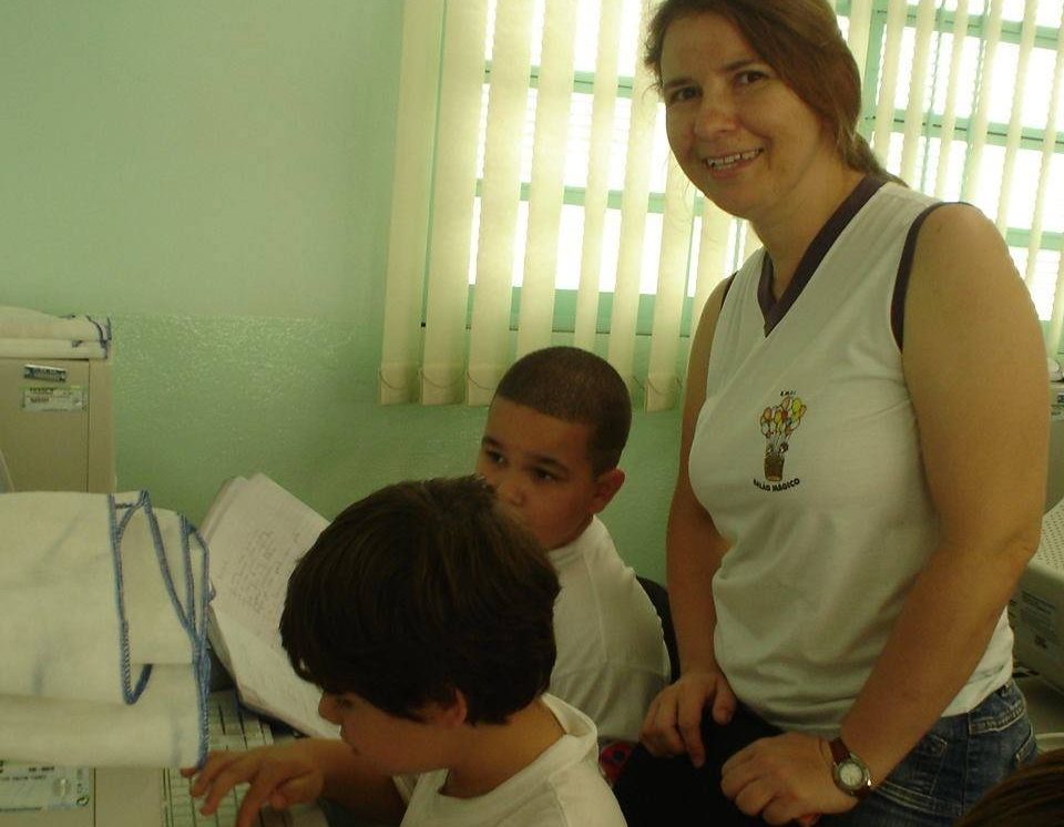 Nádia acompanha alunos, na descoberta dos computadores (Foto: Divulgação/Arquivo Pessoal)