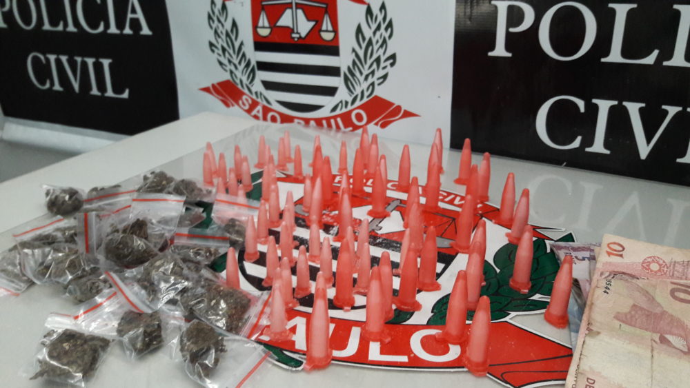 A dupla teria tentado correr ao ver a aproximação dos policiais, mas a fuga não deu certo. Com o rapaz de 17 anos estavam 24 porções de maconha, 39 pinos pequenos com cocaína e 34 pinos grandes com a mesma droga.