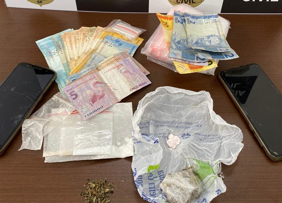 Na sequência, em imóvel localizado na Vila Lahoz, a equipe da Dise localizou um casal e no quarto foram apreendidas porções de maconha, de cocaína e dinheiro. No carro do casal foi encontrado mais um tablete de maconha.
