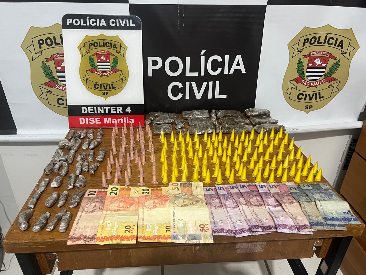 A Polícia Civil de Marília, por meio da Delegacia de Investigações sobre Entorpecentes (Dise), prendeu dois homens, de 41 e 27 anos, e apreendeu um adolescente de 16 anos durante uma operação contra o tráfico de drogas no bairro Argollo Ferrão, nesta quinta-feira (16).