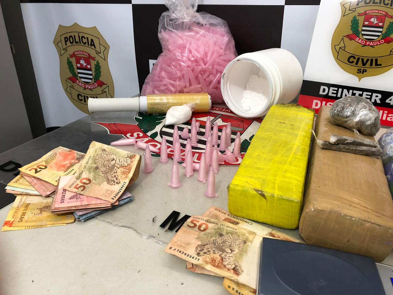 Droga, dinheiro e veículo foram apreendidos (Foto: Divulgação)