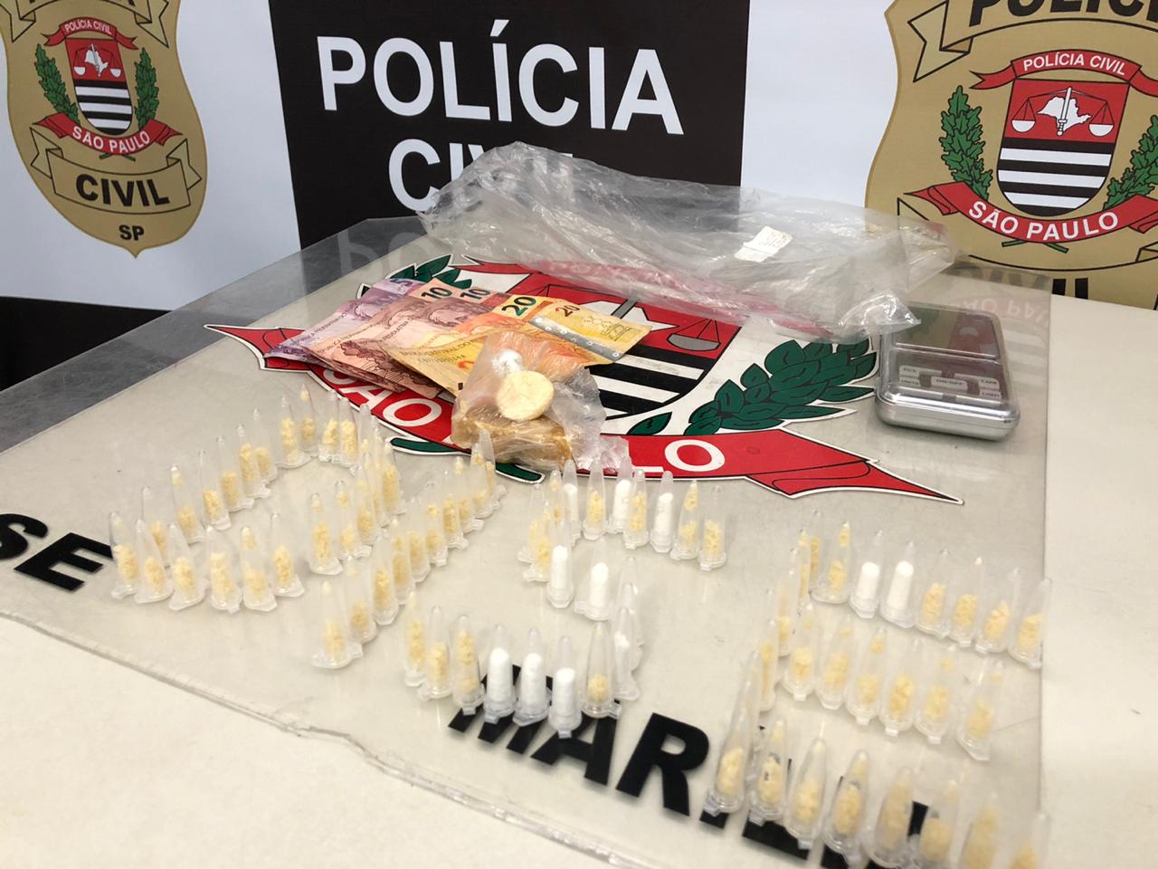 O flagrante foi feito pela Delegacia de Investigações Sobre Entorpecentes (Dise). Após receberem informações de que estaria ocorrendo intenso tráfico na rua Manoel Mansano Caraco, os policiais, munidos com mandado judicial expedido pela 3ª Vara Criminal de Marília, surpreenderam o indivíduo no quintal da residência.