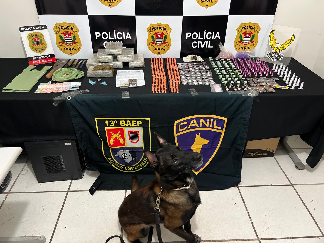 Também foram apreendidos microtubos e pinos vazios, além de embalagens do tipo “zip lock”, indicando preparo para distribuição.