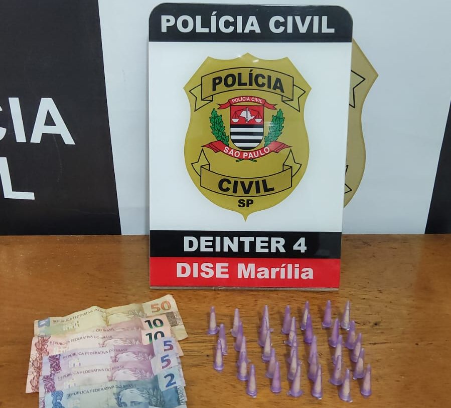 O investigado foi preso em flagrante por tráfico de drogas e conduzido à Central de Polícia Judiciária (CPJ) de Marília, onde deve passar por audiência de custódia.