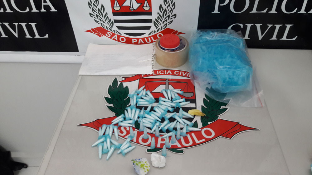 “Ao ser detido foi questionado sobre a existência de drogas e confirmou que lá havia cocaína. Do bolso da calça ele retirou três pinos com cocaína, em plástico azul. Em seguida, apontou para o guarda roupas do quarto dele, onde foram localizados três porções de cocaína, embaladas em plástico, 74 pinos azuis com a mesma droga e um saco aberto contendo dezenas de pinos vazios que certamente seriam utilizados como embalagem”, explicou o delegado Luís Marcelo Perpétuo Sampaio, titular da Dise.