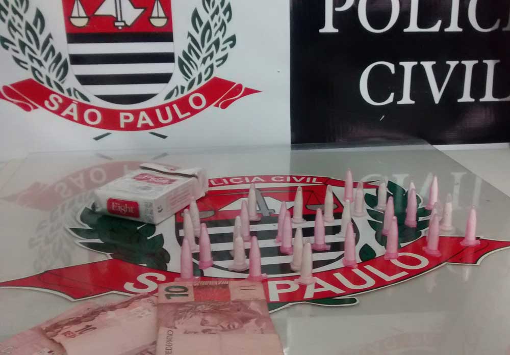 Os dois foram vistos pelos agentes vendendo pinos com cocaína, sendo que após abordagem e revista no local próximo de onde a dupla estava, foram localizados 30 micro tubos da drogas e pequena quantidade em dinheiro. A dupla foi autuada em flagrante por tráfico e associação para o tráfico.