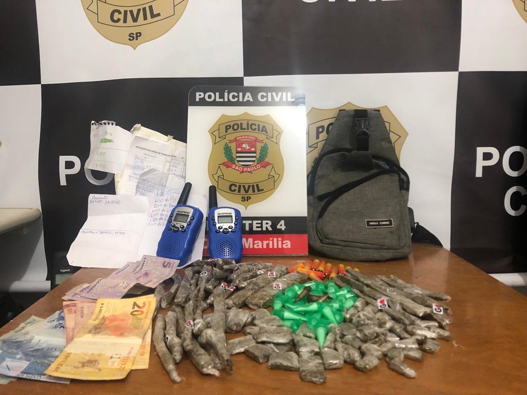 A Delegacia de Investigações Sobre Entorpecentes (Dise) prendeu dois homens, de 18 e 38 anos, que não tiveram as identidades divulgadas, por tráfico de drogas e associação ao crime nesta quarta-feira (27), no bairro CDHU, zona Sul de Marília.