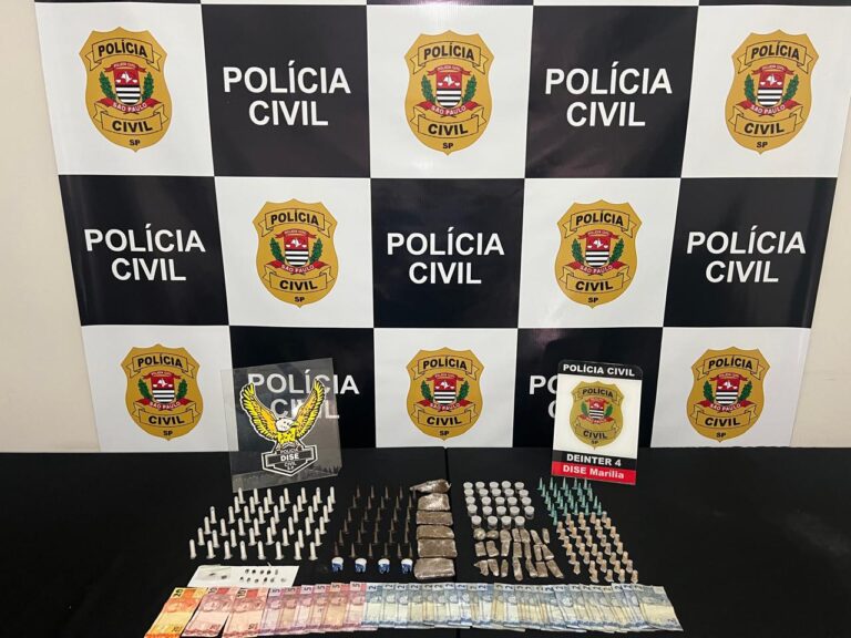 O homem foi autuado por tráfico de drogas e resistência e encaminhado à Central de Polícia Judiciária (CPJ) de Marília, onde permaneceu detido à disposição da Justiça.