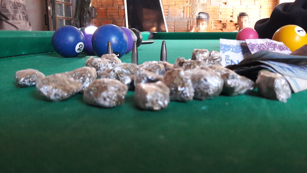 Segundo a polícia, os agentes da Dise tinham informação de que no local havia se instalado um ponto de venda de drogas, sendo que na parte frontal de um imóvel, funciona uma espécie de “bar”, onde havia equipamento de som e mesa de sinuca.