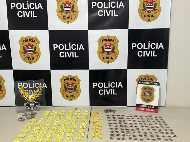 Policiais civis da Delegacia de Investigações sobre Entorpecentes (Dise) de Marília prenderam em flagrante, na manhã desta segunda-feira (17), dois homens suspeitos de integrar um ponto de venda de drogas na Vila Barros, zona norte da cidade. A informação foi divulgada pela Polícia Civil, que destacou que o local funcionava em uma viela situada em frente a uma Emei.