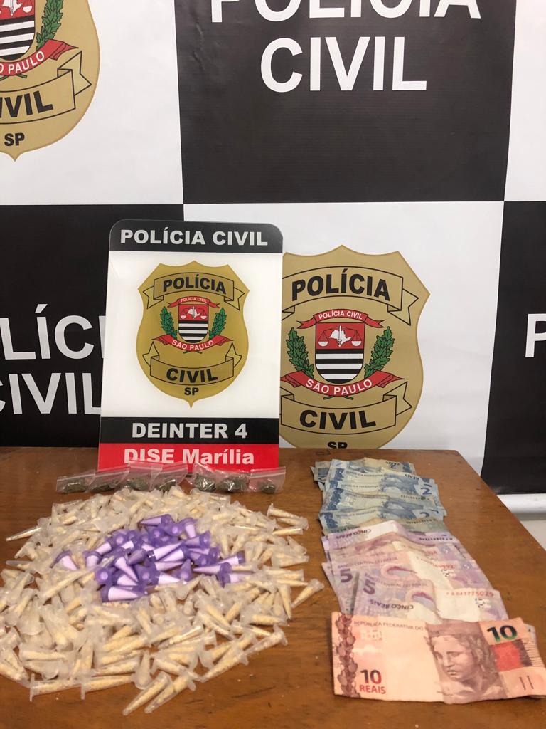 A Delegacia de Investigações Sobre Entorpecentes (Dise) prendeu um homem, de 21 anos, que não teve a identidade divulgada, por tráfico de drogas nesta quarta-feira (1) no bairro Luiz Homero Zaninotto, na zona Sul de Marília.