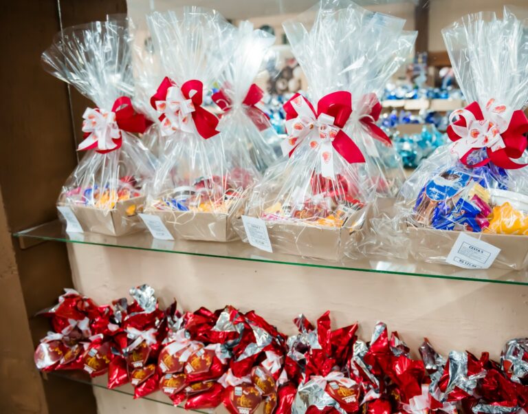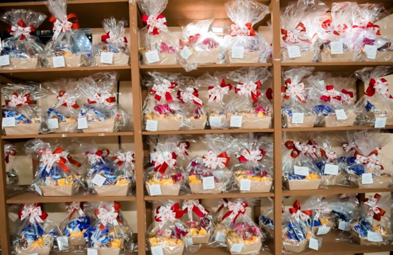 Os clientes podem adquirir cestas prontas ou montar kits personalizados, escolhendo produtos e pelúcias na loja.