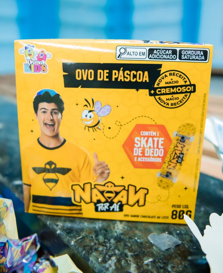 Na linha infantil temática, os ovos “Natan por aí”, que acompanham tatuagens, custam R$ 29,99. Outra aposta são os modelos com skate de dedo, considerados tendência nesta Páscoa, comercializados por R$ 39,99 — mesmo valor de itens como Natan Blocz, Bubu Fofinha, Chocolix Fofinho e Princesas Blocz.