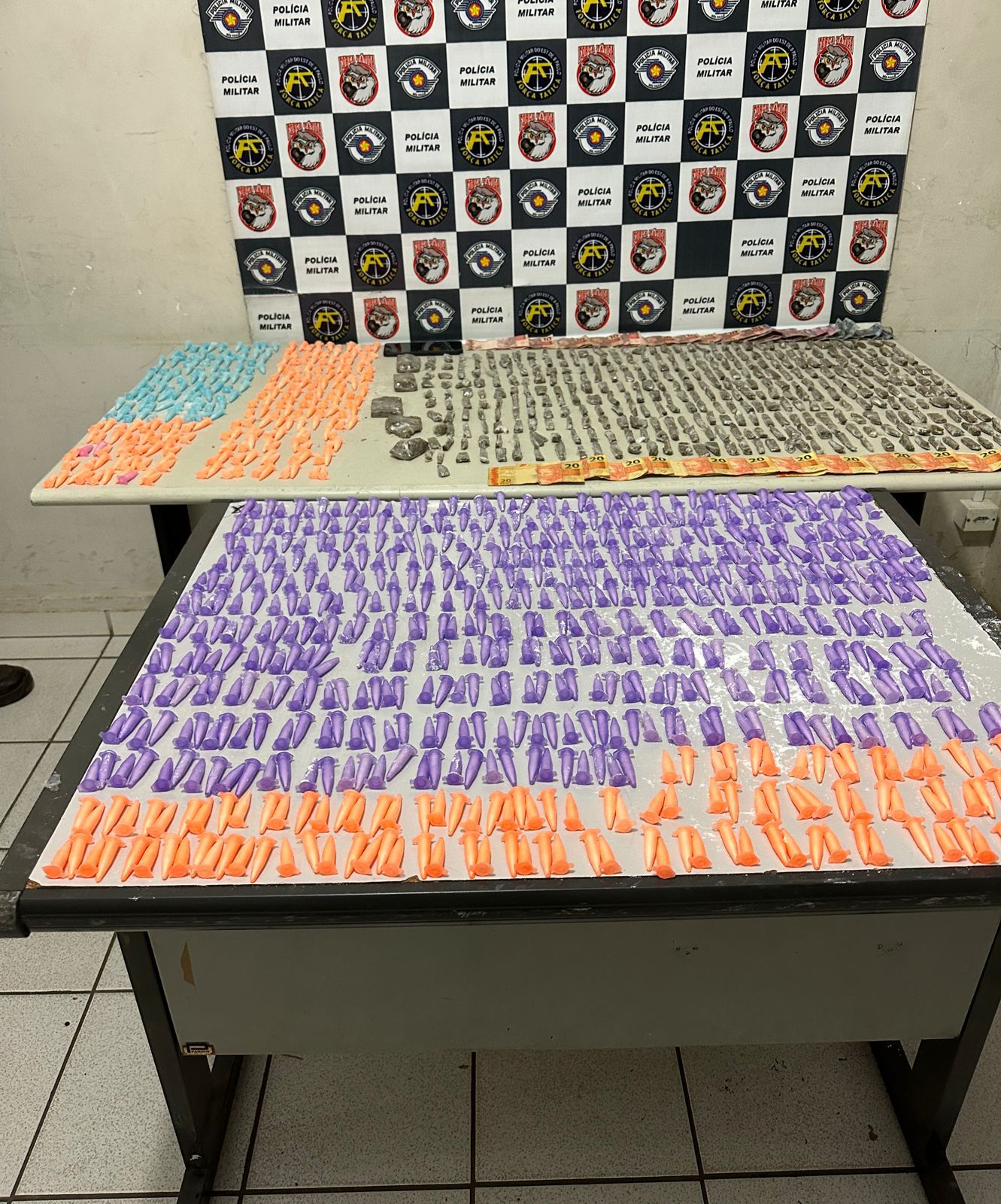 A polícia encontrou um total de 1.583 porções de drogas, entre cocaína e maconha, já embaladas para a venda. Um adolescente de 17 anos também foi apreendido no local por possível envolvimento com o crime, pois teria tentado avisar os jovens sobre a presença da viatura.