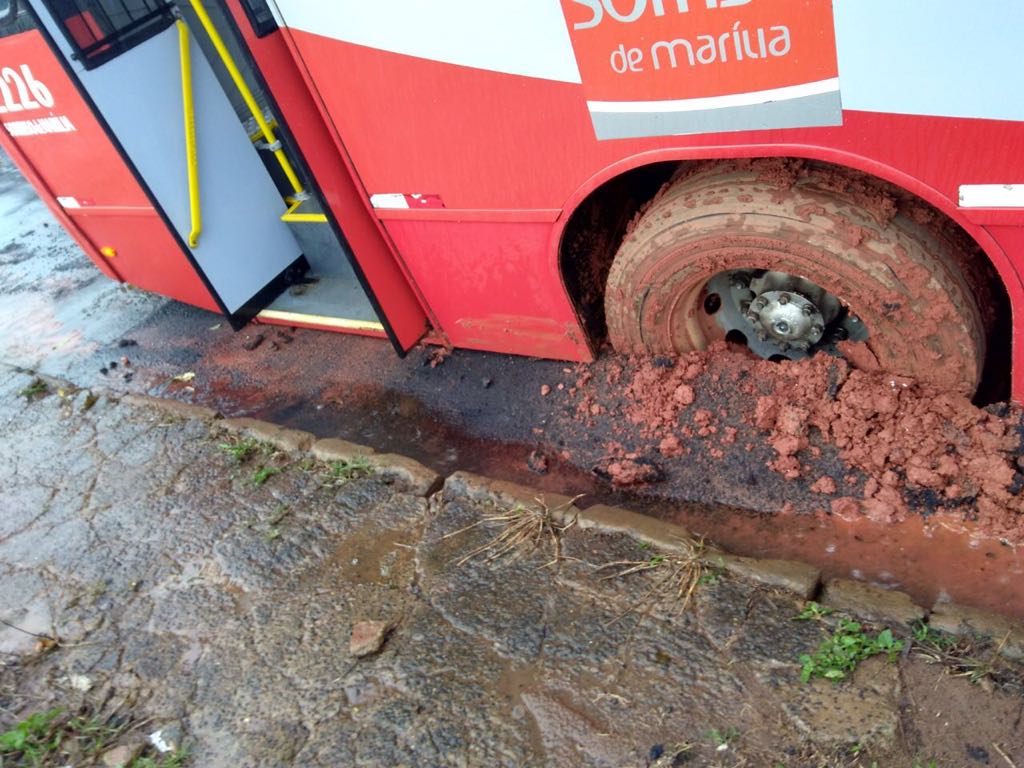 Pelo menos dois ônibus das empresas de transporte público ficaram atolados em Marília nos últimos dias por conta da combinação de chuvas e buracos nas ruas e avenidas.