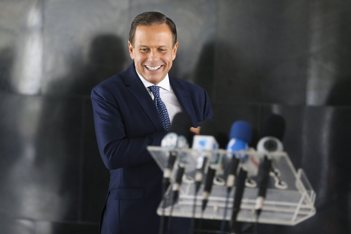 O governador de São Paulo, João Doria, durante coletiva à imprensa, após encontro com o presidente, Jair Bolsonaro