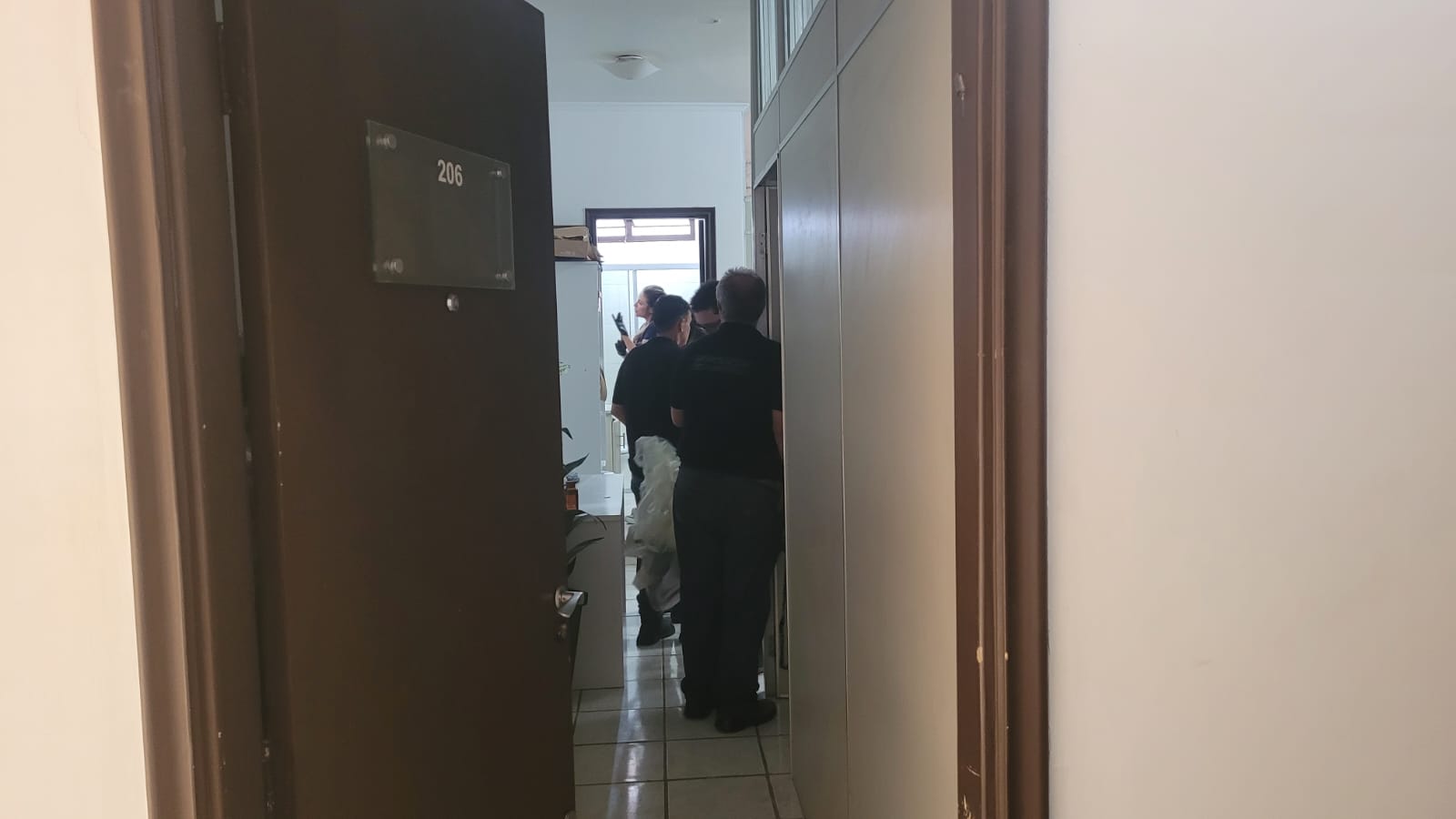 Polícia Técnico-Científica e Polícia Civil no apartamento em que a vítima possivelmente foi morta por duas mulheres (Foto: Alcyr Netto/Marília Notícia)